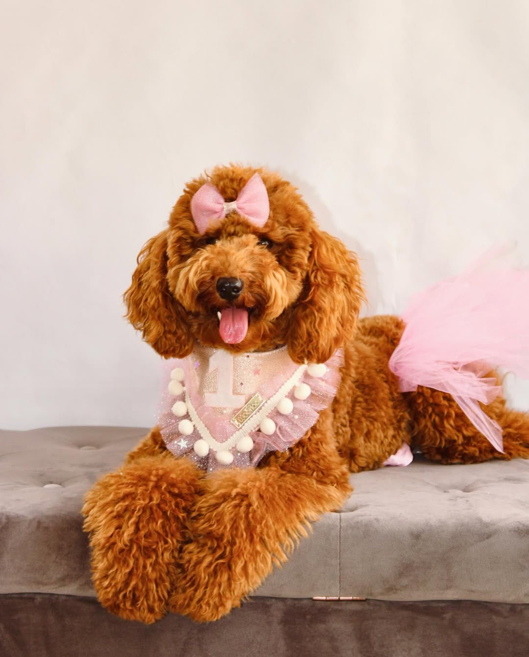 Una bandana muy especial para nosotros pues es para nuestra princesa que cumple 7 años. Muy hermosa y delicada en detalles. Definitivamente Woofiao es mi lugar favorito para vestir mis mascotas. Gracias!